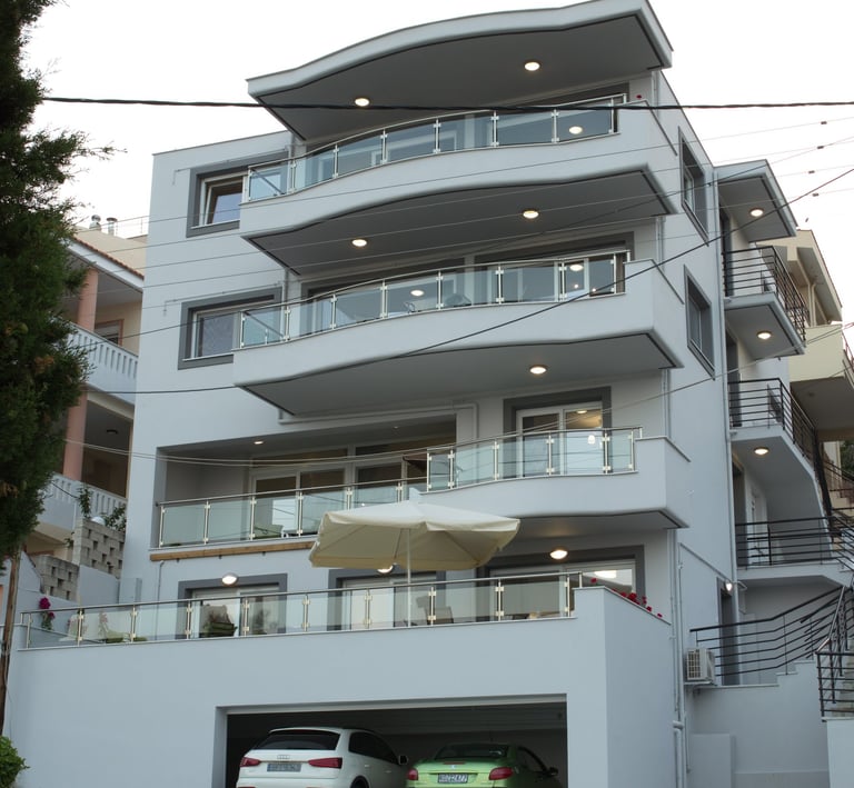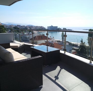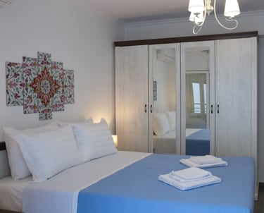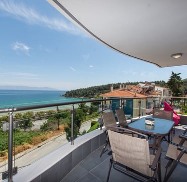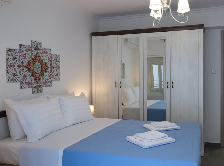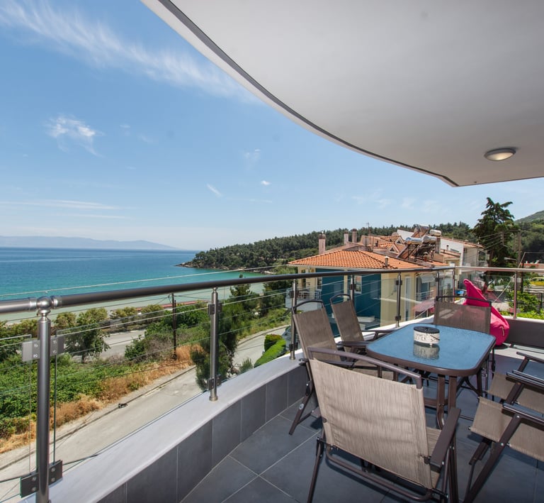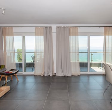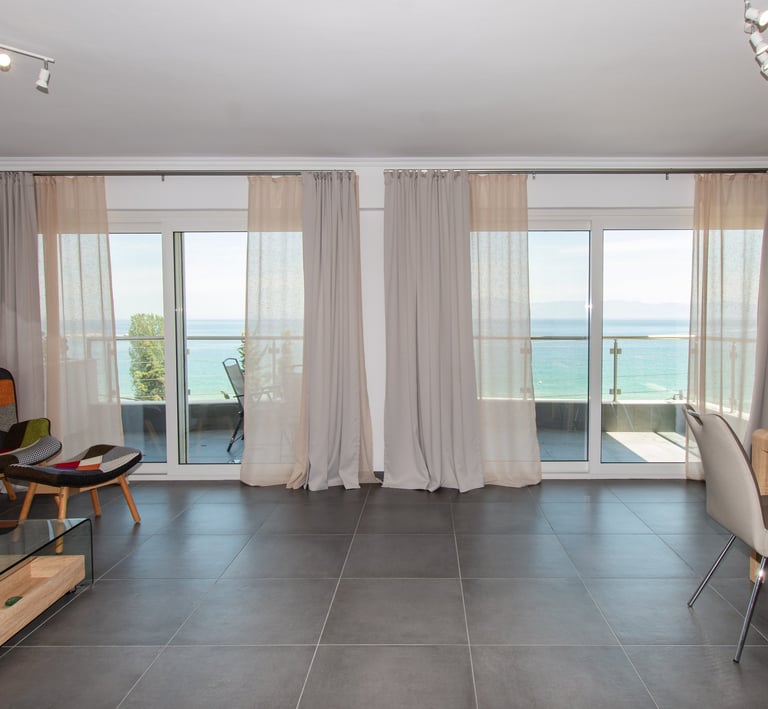 Each apartment offers a warm, inviting space with soft lighting and comfortable furnishings, perfect for unwinding after a day by the water.